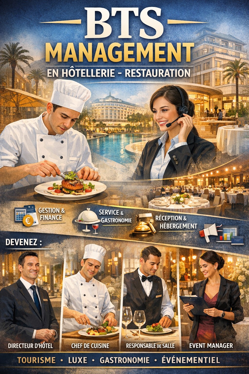 Le BTS Management en Hôtellerie Restauration option B est une formation complète et professionnelle, qui allie pratique, management et relation client. Il offre de nombreuses opportunités dans un secteur dynamique et en pleine expansion, avec une insertion rapide et des perspectives d’évolution intéressantes.