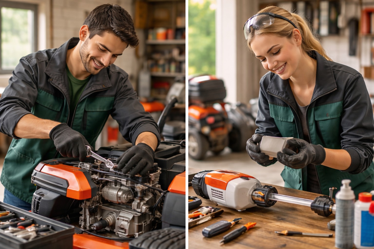 - Entretenir et réparer des matériels d’espaces verts (tondeuses, débroussailleuses, tracteurs, etc.).