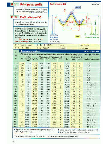 m À partir de u = 64 , les diamètres augmentent de 4 en 4 pas gms et les pas fins sont constants à partir de d = 64.