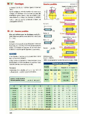 Les clavettes A section carrée peuvent être choisies Matibre usuelle
