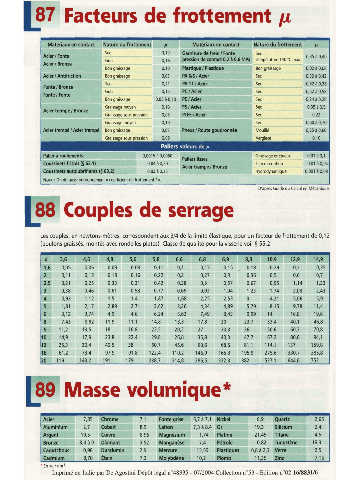 Les couples, en newtons-mètres, correspondent aux314 de la limite élastique, pour un facteur de frottement de 0,12