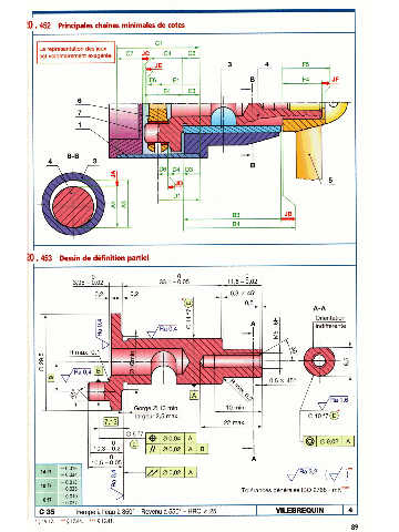 B-B 4 3 453 Dessin de ckfidon partid Orientation r- indiffbrente Tolérances gbnbrales ISO 2768 - mK*** Trempe à l'eau à 850" - Revenu à 550" - HRC 2 25 VILEBREQUIN